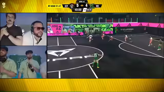 05:16:52Es kommt zum 1 gegen 1 Duell. Y-Guy von den Cactus Kickers, ein großer Fußball-Influencer, tritt gegen Jammertelli von G2 an. Die Kaktus-Kickers gehen mit 1-0 in Führung, gefolgt von einem weiteren Tor durch Marcel Ebeling zum 2-0. Es wird ein automatischer Penalty vergeben. In der Halbzeitpause steht es 3-3. Rhys und Romatra von G2 sprechen über ihre Nervosität vor einem wichtigen Elfmeter. Trimax und Niki von den Kaktus Kickers beschreiben das Spiel als unglaublich spannend und geil. In der zweiten Halbzeit erhält Korsi einen Schlag in den Bauch und benötigt ärztliche Hilfe. Es wird gehofft, dass Leon, der verletzt vom Platz muss, schnell wieder gesund wird. Die Secret Cards und President Penalties werden als besonders interessant hervorgehoben.