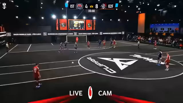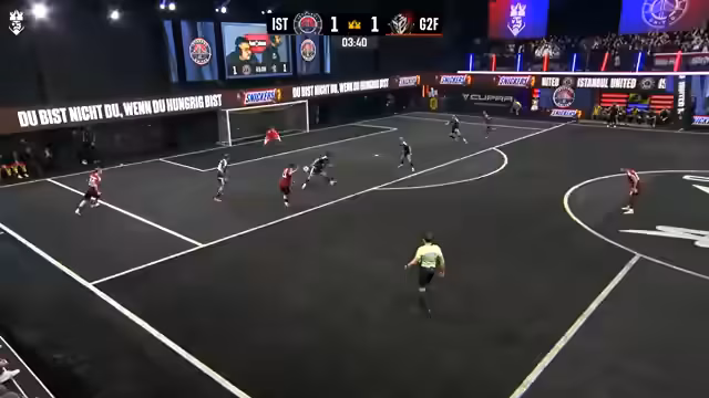 03:15:40Das Spiel startet dynamisch mit G2, das sofort gefährlich in Erscheinung tritt. Mehmet Can Senocak hat eine klare Torchance, doch der Treffer wird wegen Abseits nicht anerkannt. Istanbul United muss kurzfristig ihren Torhüter wechseln, da der Ersatz noch unerfahren ist. Die erste Halbzeithälfte ist geprägt von vielen ungenutzten Großchancen auf beiden Seiten, wobei G2 etwas mehr Ballbesitz hat.