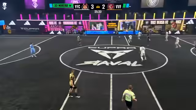 01:24:00In der zweiten Halbzeit ändern sich die Taktiken beider Teams. Vice Versa geht früh in Führung, doch Juniors kontert durch Kevin Morera, der sein erstes Tor seit Comeback schießt. Die Juniors führen 5-3, doch Vice Versa bleibt durch gezielte Angriffe im Spiel. Es kommt zu mehreren aluminum-Treffern von Vice Versa, was die Partie dramatisch gestaltet. Die Spannung steigt, da beide Teams auf den Ausgleich bedacht sind.
