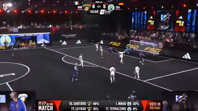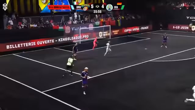00:35:02Der Abend startet mit dem Spiel von Era Colonia gegen die Boomers. Die deutsche Mannschaft aus Köln, mit Spielern wie Mo Leitner und Maus, muss nach einer knappen Auftaktniederlage punkten. Gegner sind die Boomers, ein Team aus Italien um den bekannten Rapper Fedes. Era dominiert die Anfangsphase, kann die vielen Chancen aber nicht nutzen und geht durch zwei Tore von Lofaso mit 0:2 in Rückstand.