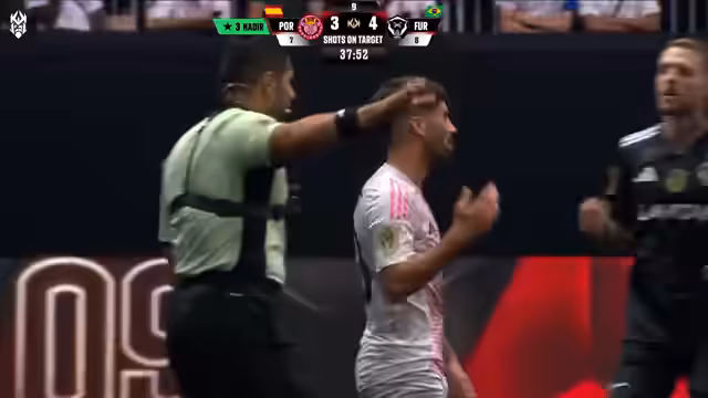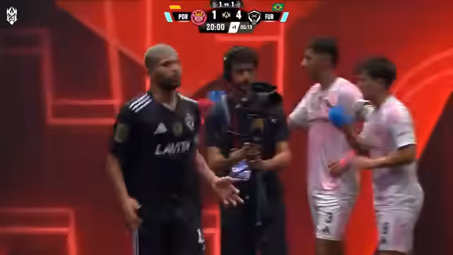 04:00:10In der Schlussphase des Spiels, inklusive der Nachspielzeit, bleibt es extrem spannend. Furia führt mit 4:3, doch die Porcinos kämpfen sich zurück. Ein potenzielles Tor der Porcinos wird wegen Abseits nicht anerkannt. Im entscheidenden Moment glänzt Nadir, der als bester Spieler des Turniers gilt, mit einem Tor im 1-gegen-1-Duell. Dies sichert den Porcinos den Sieg im Double-Goal-Modus und damit den Einzug ins Finale des Kings World Cup.