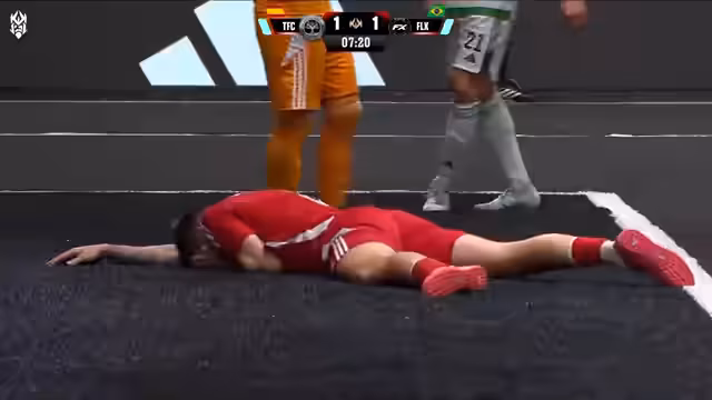 02:59:14Für Fluxo beginnt der Double Goal Modus, in dem jeder Treffer doppelt zählt. Los Troncos gelingt ein Tor, was den Abstand auf 2:0 erhöht. Zeitgleich wird bei Fluxo eine weitere Karte gezogen, die eine zweite Strafe bedeuten könnte. Die letzten Minuten werden extrem spannungsgeladen, da nur noch wenige Sekunden auf der Uhr sind.