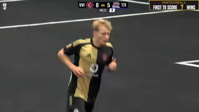 05:22:43Die Partie mündet in eine extrem knappe Endphase. Nach verschiedenen spieltechnischen Fehlern durch den Kommentator, der fälschlicherweise Spieler reduziert, findet sich Weiß Wörser in einer Überzahl-Situation wieder. Nach einem weiteren schweren Fehler, der ein zusätzliches Fehlverhältnis verursacht, geht es in die Ultima Ratio: ein Eins-gegen-Eins im Deescalador. Hagenblom von Tiki Taka nutzt diese Chance und schießt zum entscheidenden Tor, während Weiß Wörser die Verteidigung nicht halten kann.