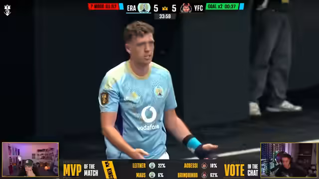 01:33:53Es gibt eine glattrote Karte für Era Colonia, nachdem ein Spieler mit vollem Risiko und hohem Risiko in den Zweikampf geht. Kurz darauf nutzen die Juniors ihre Chance perfekt mit einem gezogenen 'Double Goal'. Dieses Tor zählt nun doppelt, da es in der 'Double Goal' Phase fällt, und bringt sie wieder in Führung. Die Schiedsrichter lassen den Treffer zählen.