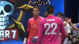 02:50:34Das Spiel gegen Ende der regulären Zeit ist dramatisch und von mehreren technischen Unterbrechungen geprägt, oft durch Verwirrung über den Timer. Panam hat die Secret Card gezogen und einen Penalty erzwungen, anstatt direkt ins Shootout zu gehen. Der Schütze von Panam scheitert jedoch am Torwart. Danach nutzt Fluxo seinen Joker, einen Starplayer, welcher direkt das 1:0 schießt und den Ball ins Double-Goal schickt, wodurch Panam aus dem Turnier ausscheidet. Fluxo kann das Spiel letztendlich mit 5:4 gewinnen.