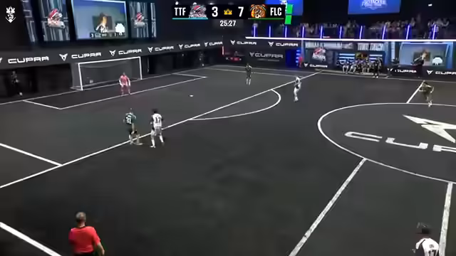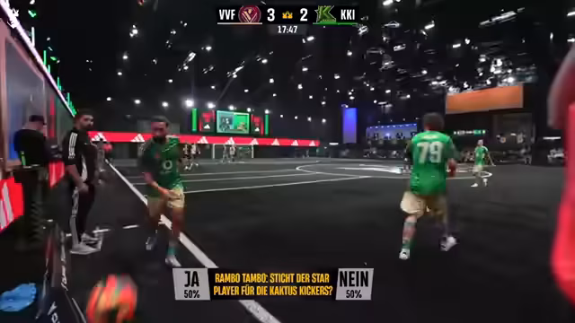 02:08:46Ein spektakulärer Schuss aus der eigenen Hälfte von einem Spieler der Tiki-Taka-Fußballfreunde landet perfekt im Winkel und überwindet Fofana. Es ist ein absolutes Traumtor, das kaum besser hätte erzielt werden können. Das Spiel wird hart umkämpft, und die Fans feuern ihre Teams leidenschaftlich an. Lukas Sienkiewicz, ein Ex-Profi, erhält seine Einsatzzeit. Nach 10 Sekunden geht das Spiel in den Double Ball Goal Modus, was bedeutet, dass Tore doppelt zählen. Ahmed Azira erzielt kurz darauf das 4:1 für die Footballistas Locos mit einem ansatzlosen Schuss ins linke Eck. Die Tiki-Taka-Fußballfreunde müssen in der Pause überlegen, wie sie den Rückstand aufholen können, denn der Würfelwurf könnte vorentscheidend sein.