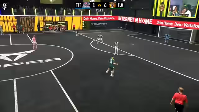 01:21:44G2 erhöht die Führung auf 5:3 durch Iris, wobei Tarek Hatziavdej maßgeblich beteiligt ist. Kurz darauf ziehen die Juniors eine President Penalty Card, die jedoch nicht genutzt werden kann, da kein Präsident auf dem Feld ist. Brinkinho, als Starplayer, könnte mit einem Tor den Spielstand direkt auf 5:5 ausgleichen. G2 zieht ebenfalls eine Secret Card und entscheidet sich für einen Penalty als Joker, der zum 7:3 führen könnte. Ein Tor von Tarek Hasiavdic wird jedoch wegen eines Handspiels vor der Torerzielung aberkannt, was der Schiedsrichter Martin Ulankiewicz transparent erklärt. Tarek verwandelt jedoch den anschließenden Elfmeter zum 6:3 und schnürt seinen Doppelpack.