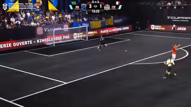 04:39:37Die letzten Minuten spielen im Doppelgoal-Modus, bei dem jedes Tor doppelt zählt. Die Spannung steigt immens, da ein Tor das Spiel entscheiden würde. FDR drückt auf den Ausgleich, aber die Abwehr von Dendelé hält stand. Ein letzter Versuch der Franzosen scheitert, und Dendelé gewinnt das Spiel am Ende mit 7:6 im Doppelgoal.