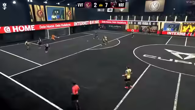 01:47:34Die zweite Partie startet zwischen Vice Versa und No Rules FC. No Rules FC gilt mit einer 66%igen Siegwahrscheinlichkeit als Favorit, Vice Versa hat jedoch das bisherige Duell für sich entscheiden können. Nick Salihamidzic berichtet von der personellen Veränderung bei Vice Versa, bei der Marvin Gomoloch im Tor steht, ein ehemaliger Mannschaftskollege von ihm. Das Spiel ist von Beginn an offen und intensiv, mit lauten Coachings von den Seitenlinien und einem hohen Tempo.