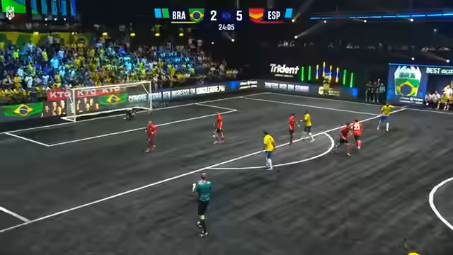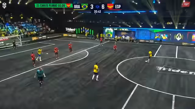 07:02:00Das Spiel geht in den Fortnite-Matchball Modus. Die Spanier benötigen nur noch ein Tor zum Sieg, während die Brasilianer vier Tore erzielen müssen. Durch einen roten Karten und dem stetigen Abzug von Spielern, wird das Feld für die Brasilianer immer enger. Letztendlich schießen die Spanier das entscheidende Tor und gewinnen das Spiel mit 7 zu 3 und feiern einen deutlichen Sieg.