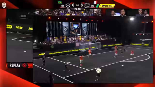 04:13:58Furia führt, nachdem Lepao ein abseitsfreies Kunsttor mit einem Fallrückzieher erzielt. Carasso kämpft sich zurück und gleicht aus. Das Spiel ist offen und voller spektakulärer Szenen. Beite Teams nutzen Secret Cards und Präsidenten-Penalties. Furia ist die dominierende Mannschaft, aber Carasso bleibt durch kämpferische Leistung bis zum Schluss im Spiel und erzwingt eine dramatische Schlussphase.
