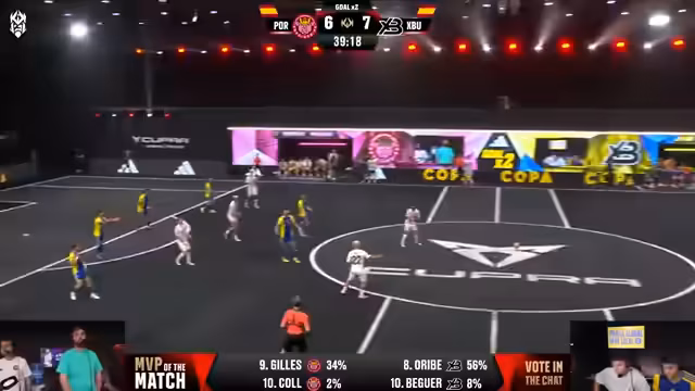 02:23:45Das Spiel startet in den Double-Goal-Modus, der die Spannung zusätzlich anheizt. Die Zuschauer werden aufgerufen, im Chat ihren MVP des Spiels zu wählen. Gilles Vidal sticht dabei besonders hervor, da er bereits vier Tore erzielt hat und damit als entscheidende Kraft für Porcinos agiert. Die Partie bleibt extrem umkämpft und unvorhersehbar.