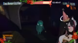 09:11:54Nach dem Essen der Dino-Pancakes und einer kurzen Pause, in der der Streamer sein Pulsmesser vorbereitet, wechselt der Inhalt des Streams zum Horror-Spiel Repo. Die Streamer, unter anderem Nuri und Lobelia, begeben sich in das Spiel. Ein Bingo-Auftrag wird erwähnt, der vorsieht, dass Kiki als Erster sterben muss. Die Gruppe erkundet das Spiel, trifft auf verschiedene Monster wie einen blauen Panzer und Bodenkrabbler, und versucht, Loot zu sammeln, um den Wagen zu füllen und zu extrahieren.