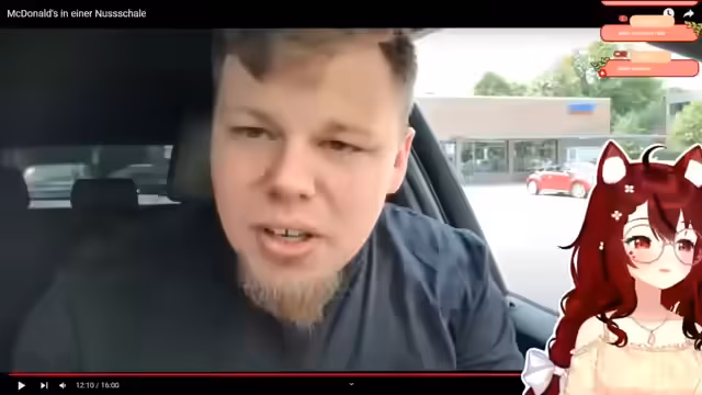 01:49:13Der Streamer schlägt den Zuschauern vor, gemeinsam ein Reaktions-Video anzuschauen, und wählt das Thema „McDonalds in einer Nussschale“. Dies führt zu einer hitzigen Diskussion über die Schreibweise des Unternehmensnamens, wobei der Streamer die Variante „Meckes“ bevorzugt. Anschließend werden persönliche Erinnerungen an McDonalds aus der Kindheit geteilt, die eng mit Familienfahrten und Erlebnissen wie einem Kindergeburtstag verbunden sind.