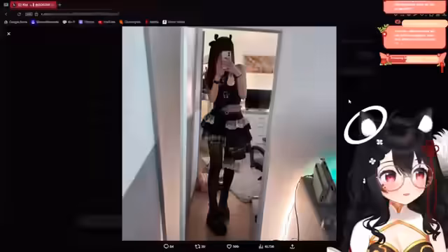 00:56:08Der Streamer geht auf das gezeigte Outfit im Detail ein und stellt klar, dass es sich nicht um eine selbstgemachte Cosplay-Kostüm, sondern um ein gekauftes Kleid handelt, das für den Twitch-Maskenball geplant war. Es wird die Herkunft der diversen Teile erklärt, darunter die bei Etsy bestellten Accessoires. Auch das Tragen von pinken Kontaktlinsen wird angesprochen, das Teil des Gesamterlebnisses war und das Erscheinungsbild nach eigenen Worten 'wild' wirken ließ.