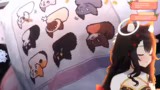 01:43:03Der Fokus verschiebt sich auf die Vorstellung von Geschenken und Fanpost, die sie auf der Polaris erhalten hat. Sie zeigt Postkarten, darunter ein selbstgestaltetes Giraffenbild, das sie seit Kindertagen besitzt, und ein Bild, auf dem sie mit 'Mimi' abgebildet ist. Weiterhin präsentiert sie verschiedene persönliche Gegenstände wie eine neue Brille, Beutel, ein Mauspad und Souvenirs aus dem Merchandise der Convention, die sie in ihre neue Wohnung integrieren möchte.