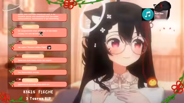 00:23:07Die Streamerin bedankt sich für den Lurky und erwähnt ihre neu gefärbten pinken Strähnen im Haar, was zu vermehrten Kommentaren geführt hat. Sie scherzt darüber, dass sie jetzt besser darin sei, alte Omis zu rizzlen, da diese ihren Stil mögen würden. Es wird überlegt, ob Yoko nach einem Toggle für das Model mit pinken Strähnen gefragt werden soll. Geplant ist eine Kollaboration ab 17 Uhr, wobei sie unsicher ist, ob sie diese selbst streamen soll, da es viele Teilnehmer gibt. Sie äußert Bedenken bezüglich der Stream-Bitrate und deren Auswirkungen auf die Stabilität des Streams. Es wird über den gestrigen Horror-Stream gesprochen, bei dem die Streamerin geweint hat. Sie freut sich über die Anwesenheit der Zuschauer und verwechselt Marcel und Marc erneut. Die Idee, pinke Strähnen zu haben, sei aus dem Chat gekommen und sie möchte Videos mit den Zuschauern schauen und hat Lust auf Cult of the Lamb bekommen.