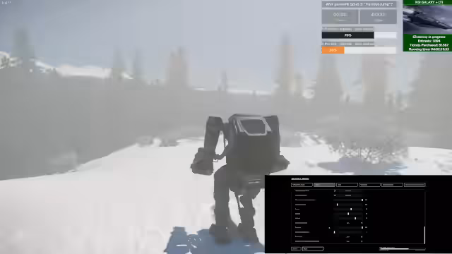 02:59:42Ein neues Spiel namens Forest Jump beginnt, bei dem die Spieler mit Geos durch einen Wald navigieren müssen. Das Ziel ist, ein 1,5 Kilometer entferntes Schiff zu erreichen, wobei die Unkontrollierbarkeit nach einem Sprung die Herausforderung darstellt. Die Spieler testen kurz die Steuerung des Geo und starten das Rennen. Es gibt technische Probleme mit der Grafik, wie einen extrem hellen Nebel, was die Sichtbarkeit beeinträchtigt. Dennoch gelingt es einem Spieler, das Ziel zu erreichen und den Punkt zu sichern, was den Stand der Showdown-Serie ausgleicht.