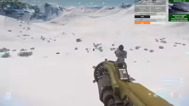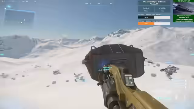 04:27:03Das Spiel Eisjäger findet in einer verschneiten Landschaft statt. Die Spieler fahren mit Sparthahns durch ein Feld mit Kryopods und müssen diese abschießen, damit sie umfallen. Wer mehr Kryopods zum Liegen bringt, gewinnt. Nach dem ersten Durchgang gibt es einen Gleichstand. Das Spiel wird wiederholt und entschieden. Knebel kann deutlich mehr Kryopods zum Umfallen bringen als Laufheuer und gewinnt.