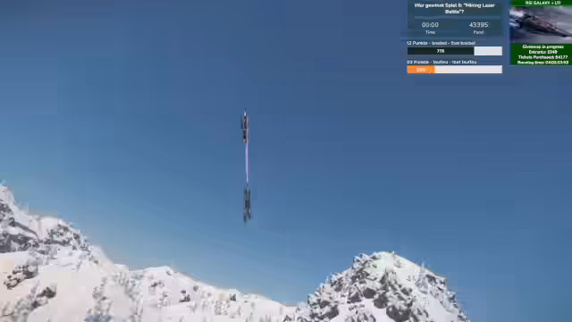 04:10:59Ein weiteres Spiel, Prospector Laser Battle, beginnt. Die Spieler fliegen in Prospektoren ohne Schilde im SCM-Modus. Ziel ist es, den Gegner durch Laserbeschuss flugunfähig zu machen, ohne zu rammen. Das Spiel wird durch technische Probleme und Kollisionen unterbrochen. Nach Reparaturen startet das Spiel erneut. Knebel kann Laufheuer durch Schaden an seinem Triebwerk und eine Explosion von Erzbehältern besiegen und gewinnt damit 6 Punkte.