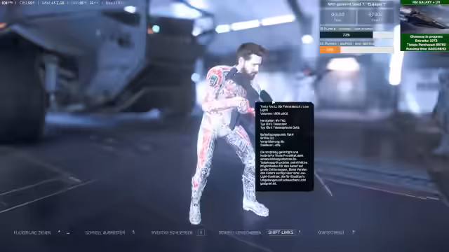 00:37:18Der Streamer und ein Teilnehmer beenden die gestern begonnene Wikido-Quest. Es wird gezeigt, wie man die Quest-Materialien, einschließlich der wertvollen NN13-Waffen, an einem Frachtaufüg abgibt, um den geflügelten und mit Jetpack ausgestatteten Artil S-Igiti zu erhalten. Der Host betont die Wichtigkeit, das neue Schiff im Hangar zu speichern, um es dauerhaft im Spiel behalten zu können und Datenbankfehlern durch Patches vorzubeugen.