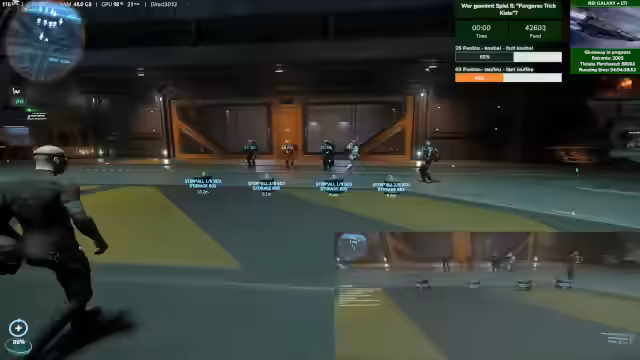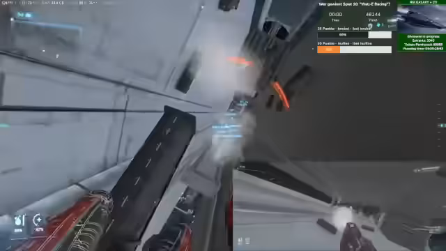 02:21:26Das erste Spiel des Citizen Showdown beginnt. Es heißt 'Ich sehe, was du nicht siehst' und findet in einem Hangar statt. Der Streamer zieht zufällige Gegenstände aus einer Kiste, die die beiden Teilnehmer auf einem externen Hangar-Pad finden und zurückbringen müssen. Das Spiel wird im Best-of-Five-Format ausgetragen, wobei derjenige, der zuerst drei Punkte sammelt, das Spiel gewinnt und einen Punkt für den Showdown erhält.