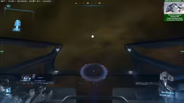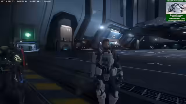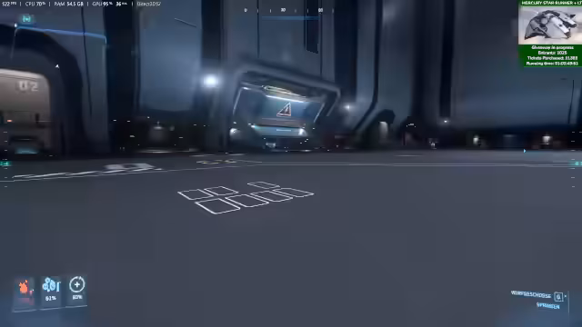 00:55:08Kurz vor dem Beginn der SC Live-Show unternimmt der Streamer einen schnellen letzten Durchgang durch die Ruinstation und die Contested Zone. Das Ziel ist es, Beute wie Komponenten zu sammeln und anschließend an den Bergungsstandort Checkmate zu bringen. Während dieses Fluges wird erneut ein Server-Desync erwähnt, bei dem der Streamer anscheinend von Türmen angegriffen wurde, obwohl er eine aktive Quest hatte. Die Ausbeute wird als erfolgreich bewertet.