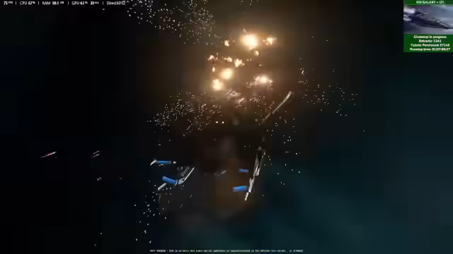 01:55:11Das Team beginnt die Eskortmission für NPCs aus der Basis. Die Valkyrie bewährt sich mit ihren starken Schilden und hält viel Beschuss aus. Währenddessen kämpft das Team gegen feindliche Jäger und Vendul-Schiffe, um den Weg freizumachen. Die Jäger erweisen sich als sehr widerstandsfähig, aber das Team schafft es, sie zu eliminieren und die Mission erfolgreich abzuschließen.