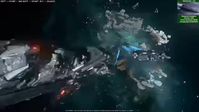 02:13:27Das Team setzt Torpedos und Railgun-Beschuss gegen den Mauler ein, während die Kampf-Musik das Geschehen begleitet. Die feindliche Mauler wehrt sich nur bedingt mit Laserfeuer, was auf Bugs im Spiel hindeutet. Nach anhaltendem Beschuss geht das feindliche Schiff schließlich unter. Der Kampf gilt als gelungen, obwohl das Spiel noch Fehler aufweist, die von den Entwicklern gefixt werden müssen.