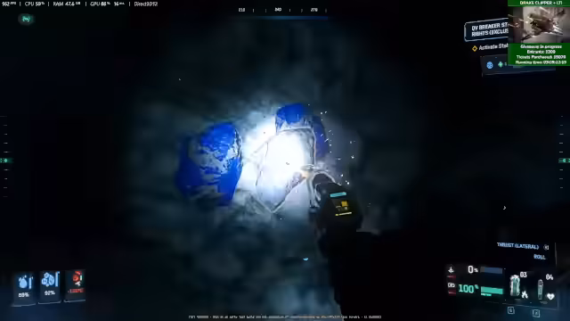 01:22:00Der Streamer erkundet eine Ventura-Station, um Erze und Batterien zu sammeln. Nachdem er NPCs eliminiert hat, die ihm den Weg versperrten, sucht er nach wertvollen Ressourcen wie Aphorit, der jedoch nur fürs Craften nützlich ist. Er findet eine wichtige Batterie und einen Katalysator, die für den späteren Gameplay-Loop notwendig sind. Währenddessen werden technische Probleme wie ein Desync und ein lautes Mikrofon erwähnt, die den Fortschritt kurzzeitig behindern.