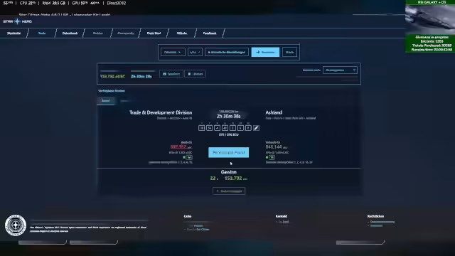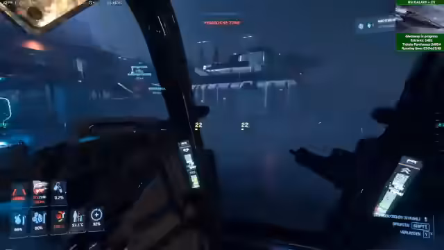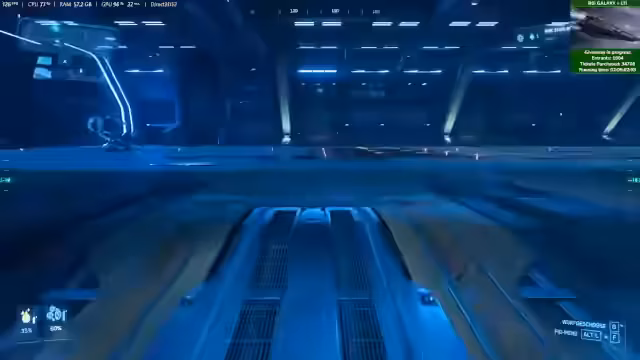 01:50:45Der Streamer beginnt einen Gameplay-Abschnitt mit der Absicht, eine Mission für Squadron 42 auf Pyro 1 durchzuführen. Dabei nennt er die aktuellen Stream-Aktionen: Es wird ein Giveaway für die RSI Galaxy mit LTI verlost und man kann durch das Teilen von Abos und Geschenkabos an einem Community-Train teilnehmen, um Bonus-Stars und Chat-Emotes zu erhalten. Er erwähnt auch einen Rabattcode für Holzbausätze und ein aktuelles Update des Star Citizen-Jump Points.
