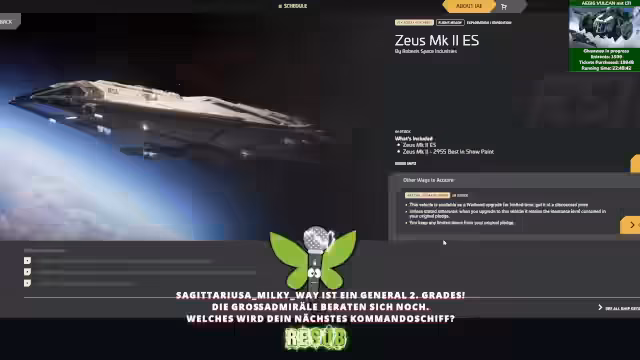02:52:31Der Asgard-Skin wird erneut als der beste der bisherigen Skins gelobt, während der Polaris-Skin als enttäuschend und einfallslos beschrieben wird. Es wird eine Wartezeit eingeplant, um die Polaris eines anderen Spielers zu präsentieren. Währenddessen werden andere Skins, wie der weiß-goldene Carrack-Skin, gezeigt. Es wird die Möglichkeit besprochen, einen Boom-Tube an der Carrack zu testen, um deren Widerstandsfähigkeit zu prüfen. Die Kosten für Torpedos und Raketen werden als albern und schlecht von CRG umgesetzt kritisiert, da sie Spieler zum Claimen von Schiffen zwingen. Ein Giveaway für eine Vulcan und eine Anvil Asgard mit LTI und Best-in-Show-Skin wird angekündigt, wobei der Gewinner der Vulcan bereits feststeht und die Asgard morgen verlost wird. Es wird auch erwähnt, dass morgen zum Finale der IAE weitere CCUs und Warbond-Angebote erscheinen, während die Best-in-Show-Schiffe und neu vorgestellte Schiffe bleiben.