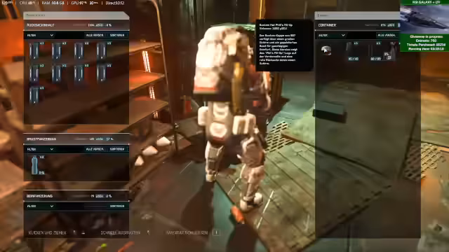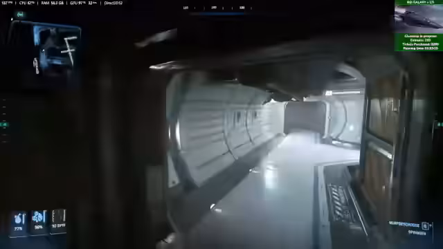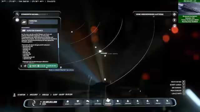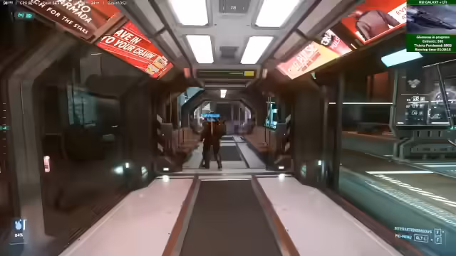 00:41:52Nach dem Kabinenzauberei und dem Präsentieren des Drake-Songs geht der Stream ins Spiel über. Als Startpunkt wird Area 18 in Crusader gewählt. Geplant ist, einen der vergünstigten RSI-Schiffe zu kaufen und anschließend eine Reise nach Pyro zu unternehmen. Dort sollen Missionen und Handelsmöglichkeiten erkundet werden, um den aktuellen Spielstand zu testen und neue Content-Elemente wie Crafting in der Alpha 4.6 zu erleben. Die Zuschauer werden eingeladen, mitzufliegen.