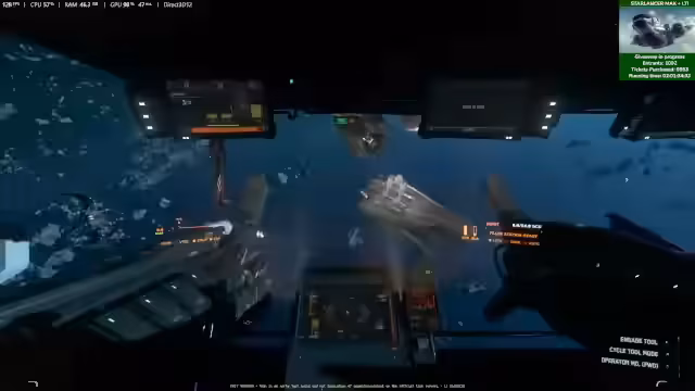 02:14:05Ein Test der neuen Stealth-Mechanik wird durchgeführt. Dabei wird festgestellt, dass das Ausschalten des Schiffes auf null es auf dem Radar unsichtbar macht, da es nicht mehr geTargetet werden kann. Nachteile sind die automatische Verlangsamung durch Weltraumreibung und das Auslaufen der Atmosphäre an Bord. Mit einem Ping kann man ein ausgeschaltetes Schiff jedoch finden, was ein taktisches Element darstellt und zukünftig rebalanced werden soll.