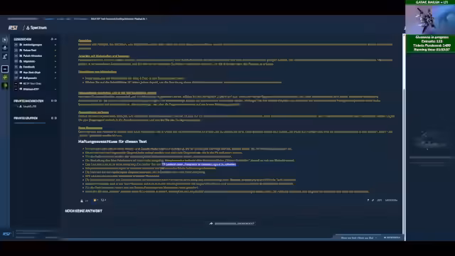 00:24:20Es wird präzisiert, dass das NDA speziell für Evocati-Patches gilt: Keine Screenshots, Gameplay-Videos oder Tonaufnahmen, aber Beschreibungen sind erlaubt. Patch Notes dürfen gezeigt und vorlesen werden. Der Streamer nutzt Malerei als Workaround, um Inhalte zu vermitteln, ohne gegen Regeln zu verstoßen. Parallel werden Subs und Follows für den Tech Preview mit vierfachen Stars belohnt, während der Giveaway für den Gatac Railen mit LTI beworben wird. Die Community wird aktiv in den Chat einbezogen.