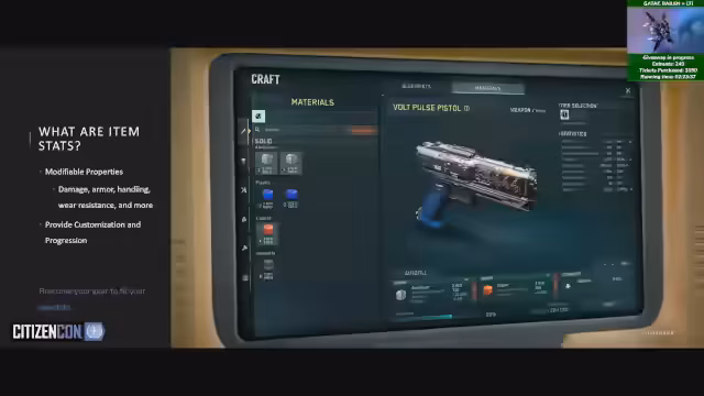 02:23:55Der heutige Stream an einem Montag war überraschend, da der Crafting Tech Preview nur sehr kurz aktiv war, was für Enttäuschung sorgt. Der Streamer hatte sich ursprünglich nicht auf einen Stream an diesem Tag eingestellt, da der erste reguläre Stream der Woche normalerweise am Mittwoch stattfindet. Die kürzliche Tech Preview wurde als vielversprechend bewertet, aber aufgrund von technischen Problemen, insbesondere mit der nicht ladenden Blueprint-Datenbank, war der Test nicht sehr ergiebig. Es wird erwartet, dass in der kommenden Woche ein weiterer Crafting PTU-Test stattfindet.