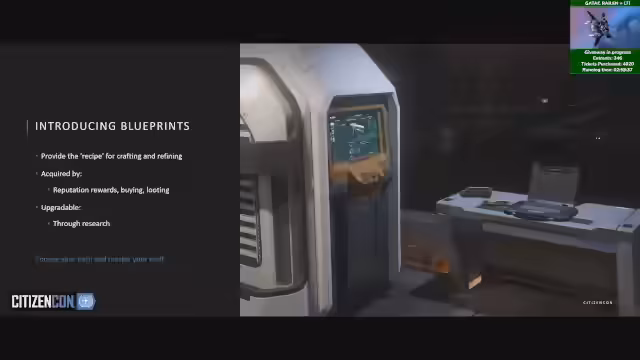 01:29:04Crafting verändert das Gameplay, indem es Ressourcensammeln sinnvoll macht und MMO-Feeling entsteht. Trading wird dezentral sein mit Basen und Börsen, aber es ist kein Overall-Auktionshaus geplant. Das neue Inventar ist nötig für Crafting und kommt wahrscheinlich vor Crafting. Blueprints werden für Waffen, Rüstungen und Schiffe verfügbar sein. Qualität beeinflusst Verkaufspreise. Diskussion über Raffinierungsprozesse, die Qualität erhöhen können, aber mit Materialverlust. Kritik am NDA, aber Respekt dafür. QA zu Crafting-Maschinen und Blueprint-Zugang wird beantwortet.