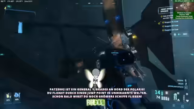 01:14:37Ein exklusiver Einblick in Squadron 42 zeigt den 'Know your enemy'-Guide mit detaillierten Beschreibungen von Vanduul-Schiffen wie dem Mauler-Cruiser und Cleaver-Boarding-Schiff. Charakteristische Designmerkmale wie gebogener Flügelbau werden hervorgehoben. Im Live-Gameplay testet der Streamer die Perseus mit Heron-Lackierung, organisiert Wikilo-Scripts in Transportkisten und demonstriert das neue BoomTube-Kanonen-Item. Nebenbei werden Serverlatenz und Spawn-Bugs bei Schiffen wie der Gladius thematisiert, ohne den Spielfluss zu unterbrechen.