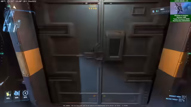 00:23:13Nach technischen Problemen und einem Einlogg-Vorgang startet das Gameplay in einer Raumstation. Gemeinsam mit den Moderatoren wird der Plan für den Industrie-Content festgelegt. Da kein einzelnes Schiff sowohl Mining als auch Salvaging kann, wird die Strategie verfolgt, eine Herkules C2 als 'eierlegende Wollmilchsau' zu nutzen, in welche ein Bergbauschiff und ein Schiff für das Ausbeuten von Wrackteilen eingepackt werden.