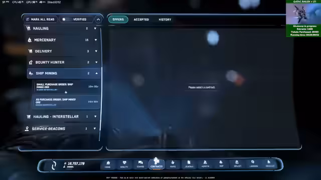 01:00:27Der Stream beginnt mit einer einfachen 'Ship Mining'-Mission. Es wird gezeigt, wie man die benötigten Rohstoffe wie Aluminium direkt im Terminal kauft und anschließend an einer Schubbing Mining Facility abliefert. Der kleine Rufsprung von etwa 3 mm wird demonstriert, was zeigt, dass viele solcher Missionen benötigt werden, um den Ruf signifikant zu steigern.