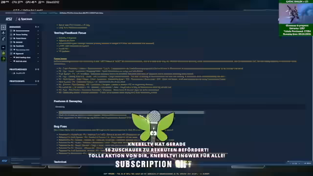03:44:43Im Stream wurde neben den Quests auch allgemein diskutiert, unter anderem über die Krankenheitsregelung in Deutschland. Des Weiteren wurden bekannte Bugs angesprochen, wie der, bei dem NPCs den Zugang zum Schiffshop in Area 18 blockieren. Dieser Bug soll mit Update 4.6 behoben werden. VR in Star Citizen wird ebenfalls erwähnt, wobei die Performance auf dem PTU-Server aufgrund von Bugfixes besser sein soll als auf den Live-Servern.