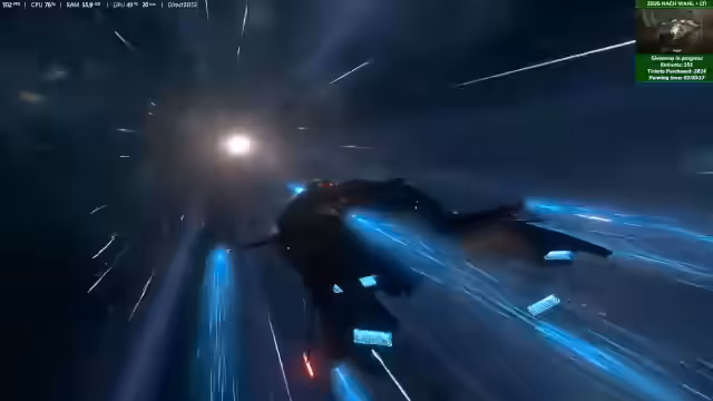 02:02:58Der Streamer stößt auf einen Bug im Spiel, bei dem das Schiff im Wurmloch hängen bleibt. Nachdem mehrere Versuche scheitern, wird ein Workaround getestet: Vor dem Durchflug des Wurmlochs kurz warten und dann langsam durchfliegen. Dieser Ansatz scheint erfolgreich zu sein und wird als Lösung für das Problem vorgeschlagen.