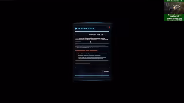 03:58:19Der Stream kündigt ein Giveaway an - einen ZEUS mit LTI (Life Time Insurance), bei dem der Gewinner zwischen verschiedenen Versionen wählen kann. Bis zu 140 Tickets können durch Kommentare im angepinnten Kommentarbereich gewonnen werden. Gleichzeitig werden weiterhin technische Herausforderungen wie der Desync-Bug und Latenzprobleme im Spiel angesprochen. Der Versuch, mehrere Missionen gleichzeitig mit der Hull C durchzuführen, gestaltet sich schwierig, da die Quests sich möglicherweise aufhängen oder nicht korrekt funktionieren.