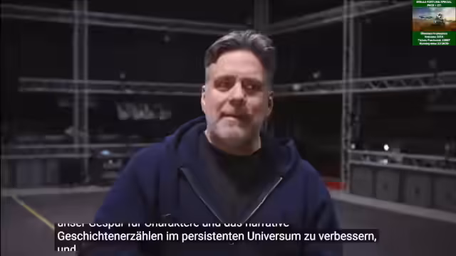 00:12:18Der Streamer zeigt den neuesten Inside Star Citizen Dev Diary, in dem Jared Huckabee als Performance Artist vorgestellt wird. Es wird gezeigt, wie Motion-Capturing-Aufnahmen im Studio durchgeführt werden. Jared Huckabee wird im Spiel einen Nachrichtensprecher namens James Harriman darstellen. Die Aufnahmen sind Teil eines neuen, inhaltsgetriebenen Ansatzes zur Erzählung von Geschichten im Persistent Universe.
