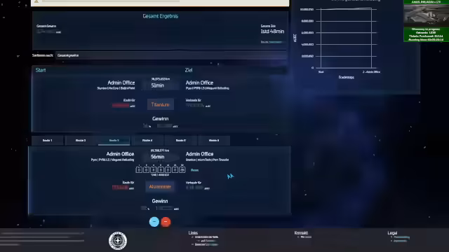 02:23:07Nach den anhaltenden Serverproblemen im 4.4-PTU wird der Live-Server aufgesucht. Dort werden in einer Gruppe Handelsrunden unternommen. Es wird ein Handel von Titan von Stanton nach Pyro geplant. Anschließend geht es zurück nach Stanton. Gleichzeitig wird erklärt, dass LTI bei der Einschmelzung eines Schiffes erhalten bleibt und beim Rückkauf wieder aktiviert wird.