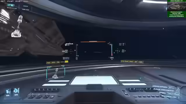 01:21:55In der untersten Ebene von Levski, welche sehr geräumig ist, kann man an den Terminals der People's Alliance auch 'Crime' bezahlen. Dies ist ein bisher einzigartiges Feature. Die genaue Nachverfolgung der Crime-Aktivitäten ist jedoch noch unklar. Stream und Technik werden durch einen Server-Fehler unterbrochen, der den Zugriff auf das Schiff verhindert. Die Performance in Nyx wird als mittelmäßig beschrieben, etwa bei 30-40 FPS, was zeigt, dass Optimierungen noch ausstehen.