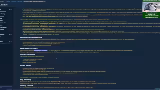 01:01:02Der Streamer diskutiert mit dem VR-Entwickler Silvan über die Implementierung: VR wurde als Hobbyprojekt über Jahre integriert, ohne Hauptressourcen. Er schlägt eine Partnerschaft mit Virtual Desktop vor, um die VR-Unterstützung zu verbessern. Positive Resonanz zur aktuellen experimentalen VR-Version, Kritik betrifft nur die UI-Lesbarkeit. Giveaway wird nochmals bestätigt.