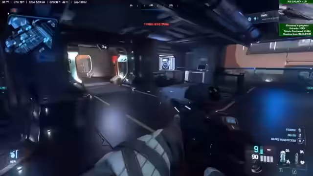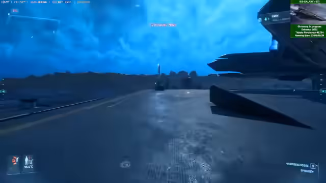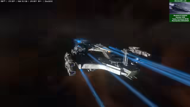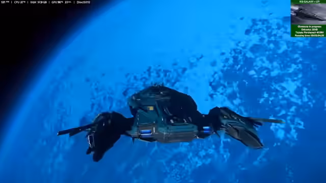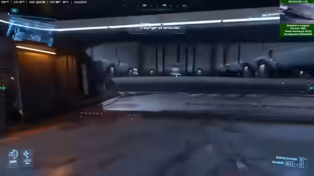 01:09:54Die Gruppe versuchte, ins Pyro-System zu gelangen, stieß jedoch auf technische Schwierigkeiten. Mehrfache Versuche, ein Wurmloch zu durchqueren, scheiterten aufgrund von Bugs, die den Durchflug verhinderten. Der Streamer konnte nach mehrmaligen Versuchen den Durchgang schließlich erzwingen, indem er sich rückwärts drehte und kurz vor dem Ende des Tunnels gegen die Wand krachte.