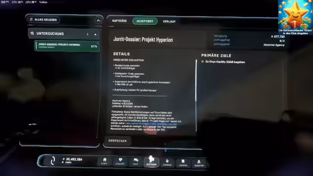 04:35:43Die Quests in Pyro sind deutlich schwieriger, da man hier gegen mehrere gegnerische NPC-Schiffe sowie starke Geschütztürme der Asteroidenbasen kämpfen muss. Die Distanzen zwischen den Questzielen in Pyro sind auch viel größer. In Stanton sind die Quests einfacher, da nur gelandet werden muss, aber dafür ist die Gefahr durch andere Griefer-Spieler höher. Die allgemeine Meinung im Chat favorisiert Stanton für das Event.