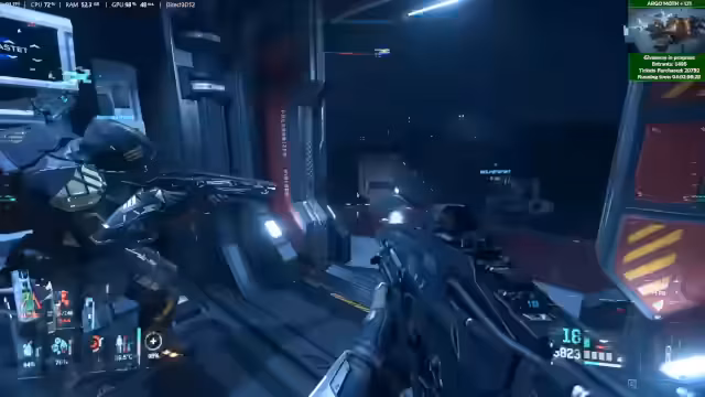 05:14:09Der Streamer bewegt sich durch die ASD-Anlage und stellt fest, dass die Anzahl der Sniper NPCs stark zugenommen hat und sie als übermächtig empfunden werden. Er kritisiert das Scripting der NPCs, insbesondere die Hunde, die immer den Standort des Spielers kennen. Er muss die Waffe ständig tauschen und nutzt den Traktorstrahl, um Batterien einzusammeln, während er unter hohem Druck kämpft.